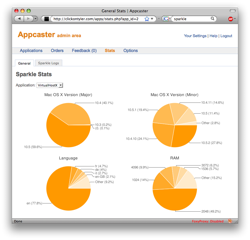 It took all of half an hour to create some basic stats from the Sparkle update data Appcaster collects. It would be trivial for other developers to add their own custom reports in the future.
