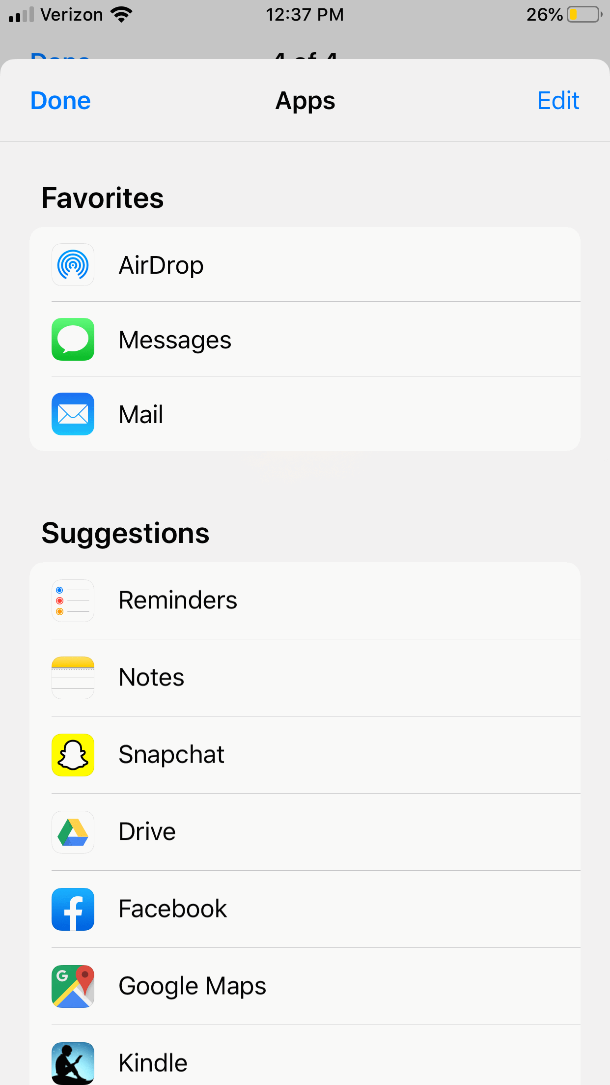 Why didn't she know there were options further down the share sheet? Because she's using an iPhone 8, which happens to be just the right height to perfectly crop the share sheet. Take a look again at the first screenshot she sent me: