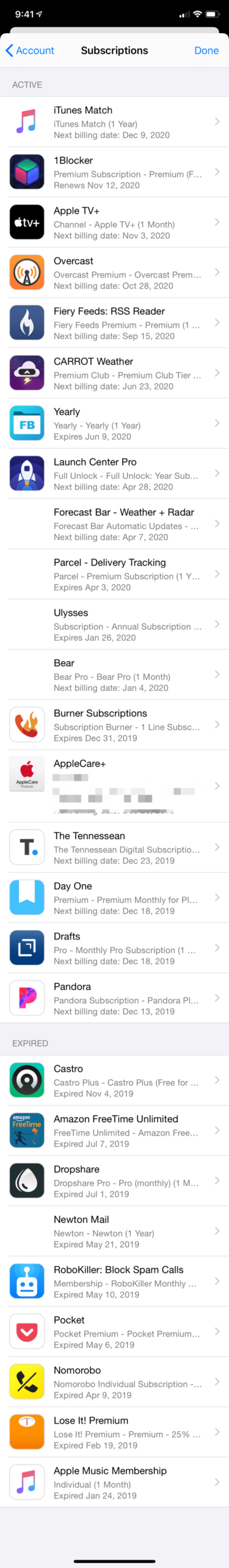 And just to prove that I eat my own dog food, here's a screenshot of my App Store Subscriptions screen: