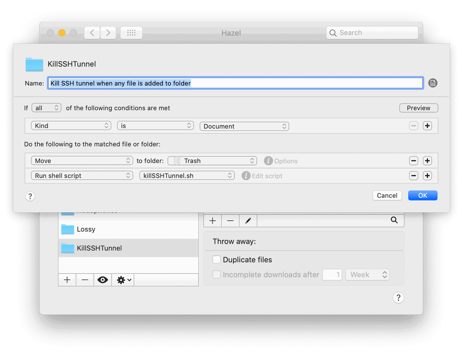 Here's how the configured Hazel rule looks: