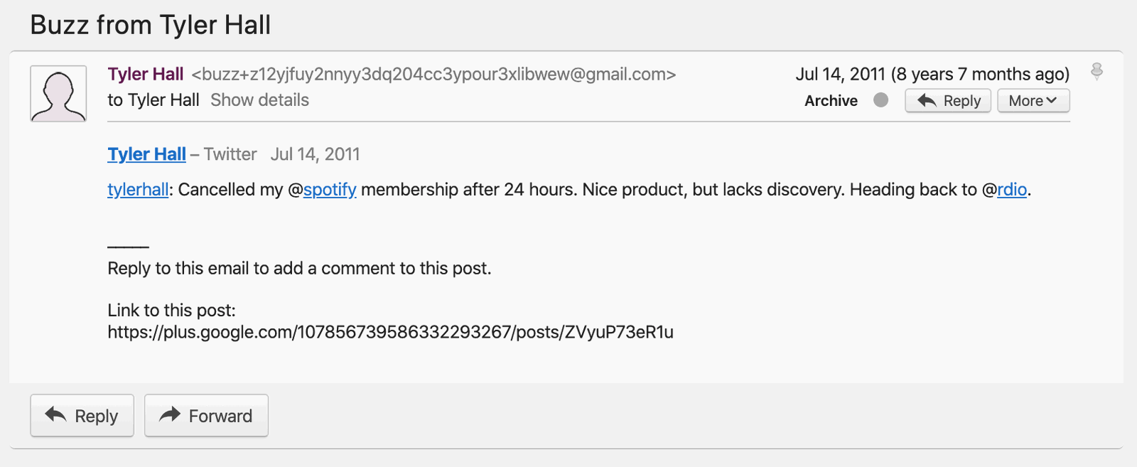 Yes, that's a Google Buzz email notification about a tweet I posted saying: