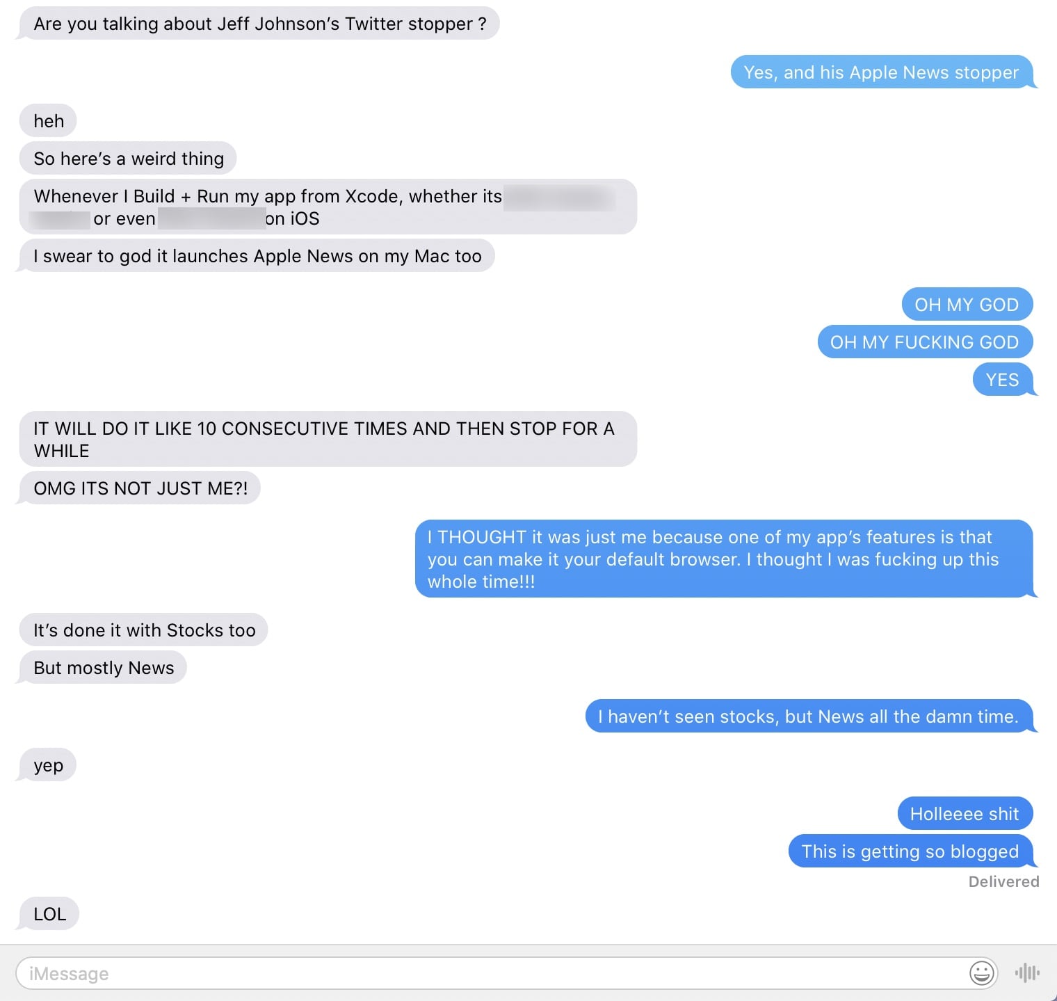 That’s one of those bizarre bugs that are, in fact, so bizarre you can’t even tell if they’re really happening or if it’s just you the user (or you the developer) screwing something up. Even when you see it happen over and over again for months. You still don’t file a radar because you can’t reproduce it or even be sure it’s a legitimate issue. But, wow. Finally having confirmation that it’s not just you? That’s a great feeling.