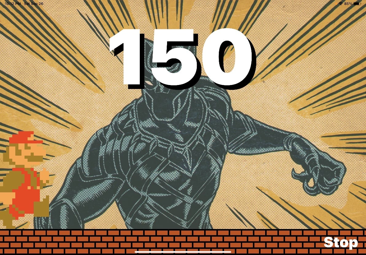 When a new game starts, the app listens for my son to read a book out loud, and iOS does on-device speech-to-text. With every word he reads, Mario runs further and further across the screen. A live counter ticks down from his word count goal. And when the counter reaches zero and Mario reaches the other side of the iPad, my son gets rewarded with confetti, Mario jumping up and down, and the official Super Mario end-of-world theme music.