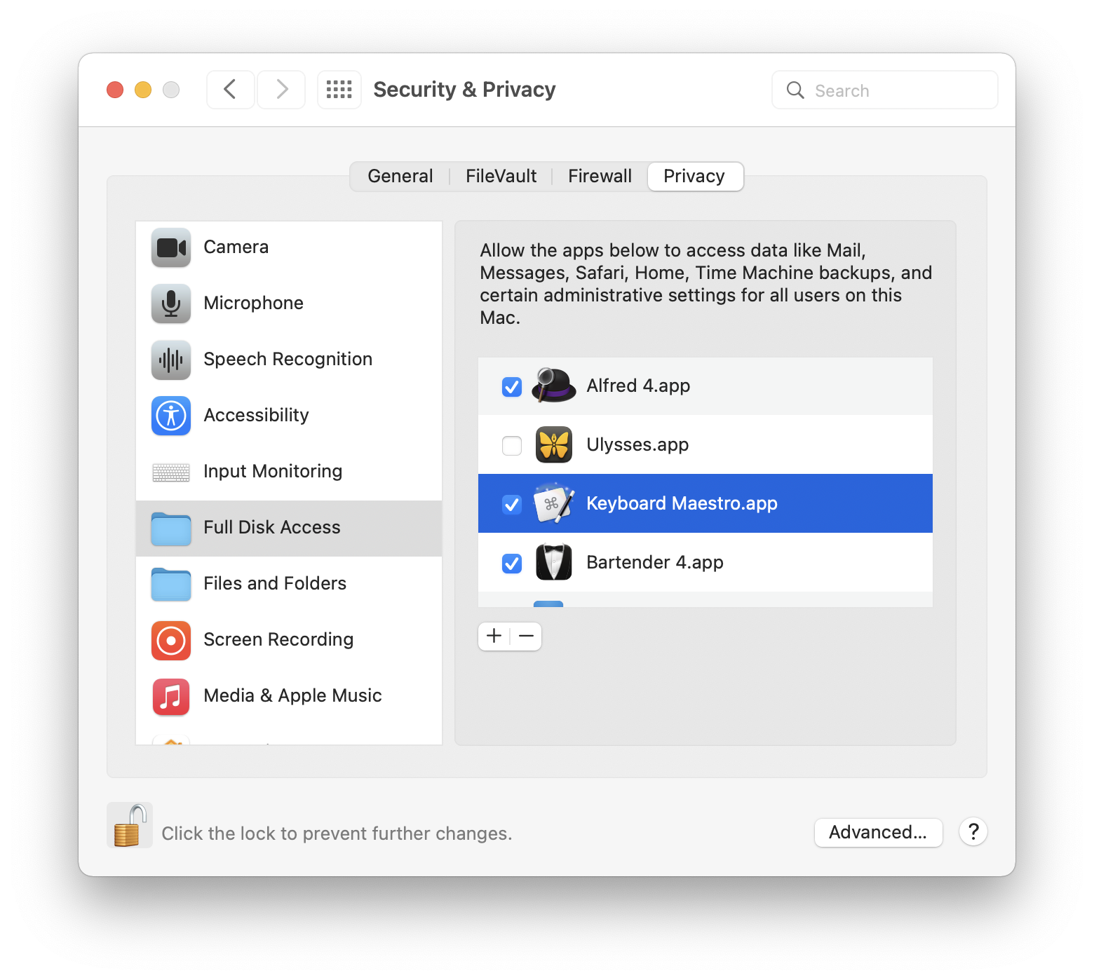 (Remember to scroll slowly through that list when looking for Keyboard Maestro. It's been how many years and still none of the Privacy sections sort their lists alphabetically?)